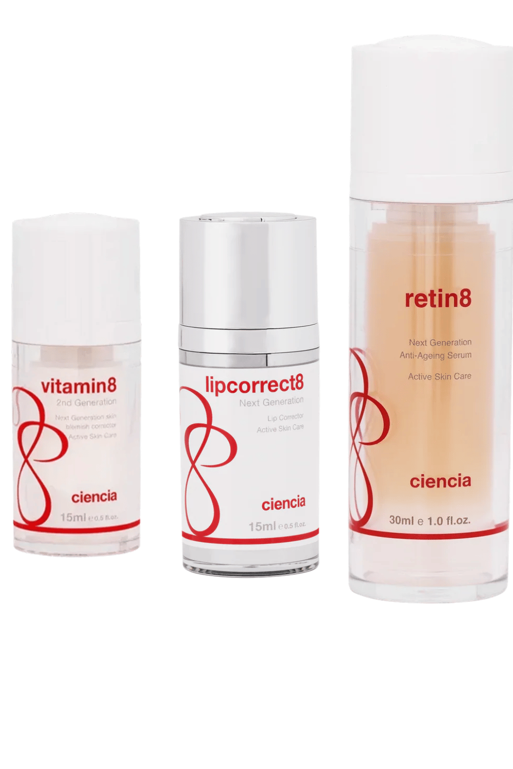 Elevate your skincare routine with the Glow Getter Set, a curated collection designed to address multiple signs of aging with scientific precision. This expertly formulated trio combines three breakthrough actives: Vitamin8 harnesses advanced Vitamin C technology for comprehensive skin rejuvenation, Lipcorrect8 targets the delicate lip area and surrounding contours where aging first appears, and Retin8 delivers retinoid benefits with minimal irritation. Together, these complementary formulations work synergistically to enhance radiance, refine texture, and restore youthful vitality—all while maintaining skin comfort and integrity.