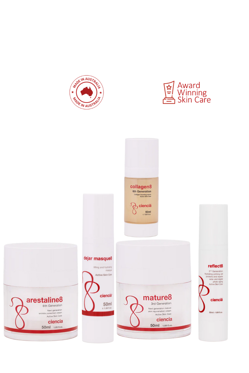 The Ultimate 5-Step System combines five targeted treatments to revitalise and nourish your skin. Featuring Collagen8 to boost firmness, Mature8 to support aging skin, Arestaline8 to smooth fine lines, Dejar Masque for deep hydration, and Reflect8 to enhance radiance. This expert blend addresses multiple skincare concerns, promoting a balanced, youthful complexion with every step. Ideal for those seeking a comprehensive, effective regimen.