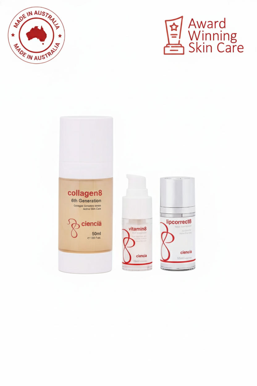 Timeless Essentials represents a curated collection of scientifically formulated skincare solutions designed to address the skin's most pressing concerns. This trio combines advanced actives with proven efficacy: a potent collagen serum in dual-chamber format for optimal stability and potency, a specialized lip and perioral treatment targeting delicate areas prone to premature aging, and a comprehensive vitamin-enriched cream. Each product works synergistically to counteract environmental damage, support skin renewal, and maintain youthful resilience. Developed with rigorous scientific methodology, Timeless Essentials delivers professional-grade results through intelligent formulation and thoughtful delivery systems.